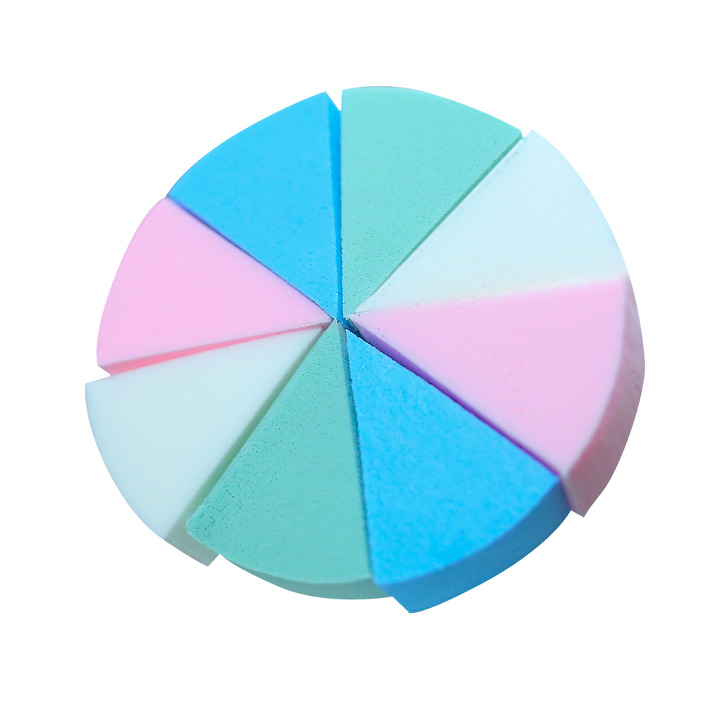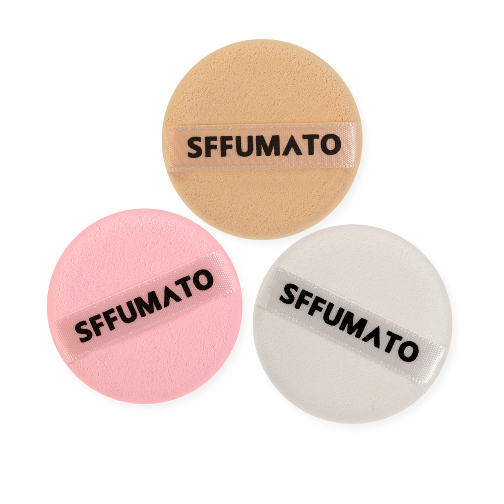 Esponja puff pequena, formato de gota, com alça de cetim, para apoio dos dedos e também para aplicar pó facial.